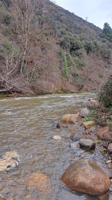 En efecto, al poco de pasar por encima del puente llegamos al lugar donde el agua brota. Me encantó ver el agujero tan borboteante, porque me consta que en otras épocas del año no está así.
